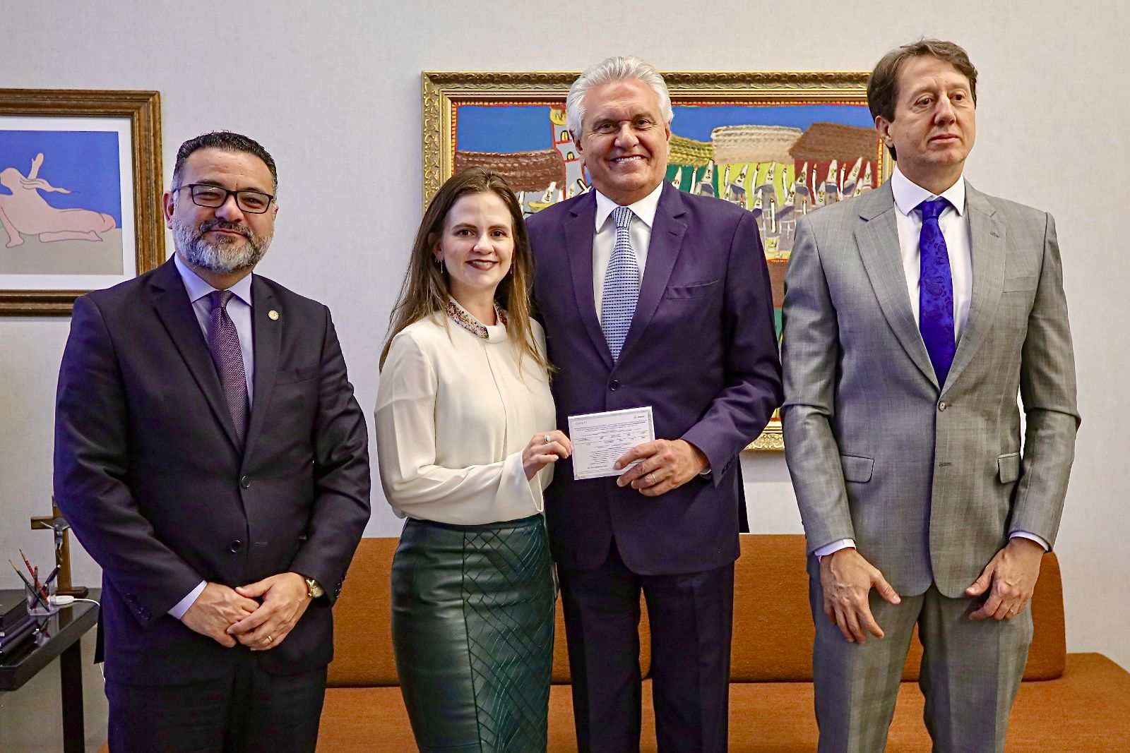 A presidente da ASMEGO, Nathália Arantes; o diretor institucional da entidade, Eduardo Oliveira; e o desembargador Murilo Vieira Faria foram recebidos pelo governador Ronaldo Caiado no Palácio das Esmeraldas.O encontro, de caráter institucional, ocorreu nesta quinta-feira (5/3), e foi o primeiro entre a presidente e o chefe do Executivo estadual depois da posse administrativa dela, em 31 de janeiro deste ano.“Um encontro marcado pelo diálogo construtivo, onde tratamos de temas importantes para os magistrados e magistradas do nosso estado”, avaliou, ao final, Nathália Arantes.“Estreitar o relacionamento entre o Poder Judiciário e o Governo Estadual fortalece nossa capacidade de promover melhorias para os goianos”, complementou a juíza.Na oportunidade, o governador também foi convidado oficialmente para a posse solene da Diretoria Executiva da ASMEGO. O evento está agendado para esta sexta-feira (6/3), às 19h30, na sede social da associação.
