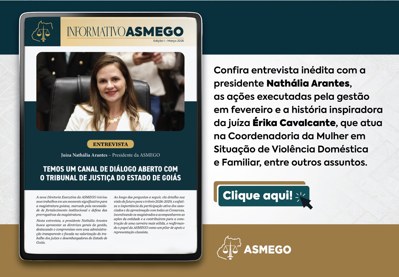 Posse solene ocorreu na noite desta sexta-feira (6/3). Juíza Nathália Arantes é a nova presidenteA Diretoria Executiva da Associação dos Magistrados do Estado de Goiás (ASMEGO) eleita para o triênio 2026-2029 foi empossada solenemente na noite desta sexta-feira (6/3), na sede social da entidade, em Goiânia. Formam a nova gestão a presidente Nathália Bueno Arantes da Costa; o 1º vice-presidente, desembargador Átila Naves Amaral; e o 2º vice-presidente, Márcio Molinari. A posse administrativa havia sido realizada em 31 de janeiro.CLIQUE AQUI - FOTOS DA POSSE - PARTE 1CLIQUE AQUI - FOTOS DA POSSE - PARTE 2CLIQUE AQUI - FOTOS DA POSSE - PARTE 3Após prestar publicamente o compromisso de posse, quando também representou os membros efetivos e suplentes do Conselho Deliberativo da ASMEGO, Nathália Arantes afirmou, em discurso, que o “norte” da sua administração inclui “fortalecer a transparência, aprimorar os mecanismos de governança e conduzir a associação com responsabilidade e austeridade, sempre com foco naquilo que realmente importa, a valorização da magistratura goiana”.Ela assumiu tom contundente ao defender a valorização e as prerrogativas da categoria. “Exercer a magistratura exige força, coragem, equilíbrio e vocação. Nossa remuneração não constitui privilégio; ela é condição necessária para o exercício independente da função jurisdicional”, ressaltou. “A magistratura é uma função de Estado que exige alta capacidade técnica, preparo permanente, dedicação exclusiva e renúncia a inúmeras outras atividades”, acrescentou.A presidente também fez um destaque especial aos magistrados aposentados – desembargadores que não estão mais na ativa, como Stenka Isaac Neto e Elcy Santos de Melo estavam na plateia. “Foram eles que ajudaram a escrever a história do Judiciário goiano. Que desbravaram este estado em tempos mais difíceis, que atuaram em comarcas distantes e que muitas vezes trabalharam sem estrutura básica”, enfatizou.ApoioO presidente do Tribunal de Justiça do Estado de Goiás (TJGO), desembargador Leandro Crispim, foi o responsável por dar posse à Diretoria Executiva. Em seu pronunciamento, ele disse ter “plena convicção” que a nova gestão da ASMEGO “conduzirá a entidade com espírito público, preservando a tradição de seriedade que marcou a história da associação, e que também contribuirá para a unidade institucional da magistratura goiana”. “Recebam a manifestação de apoio da Presidência do Tribunal de Justiça”, acrescentou Crispim.PrestígioA solenidade de posse foi concorrida. Estiveram presentes os corregedores desembargadores Marcus da Costa Ferreira (Geral da Justiça) e Anderson Máximo de Holanda (Foro Extrajudicial), a ouvidora do Poder Judiciário goiano, desembargadora Sandra Regina Teodoro Reis, e outros magistrados que atuam no Estado de Goiás.Também participaram integrantes da Associação dos Magistrados Brasileiros (AMB) e de entidades que representam a magistratura nos estados do Ceará, Mato Grosso, Rio Grande do Sul, Paraná e Tocantins, além do presidente da Associação Goiana do Ministério Público (AGMP), Leandro Murata; a presidente em exercício da Ordem dos Advogados do Brasil (OAB-GO), Talita Hayasaki; e membros da Defensoria Pública do Estado de Goiás e da Procuradoria-Geral do Estado (PGE-GO).O setor produtivo marcou presença com os presidentes da Federação das Indústrias do Estado de Goiás (Fieg), André Rocha, e da Federação do Comércio do Estado de Goiás (Fecomércio), Marcelo Baiocchi. Compareceram ainda o prefeito de Goiânia, Sandro Mabel; conselheiros e diretores da atual gestão e familiares dos empossados.